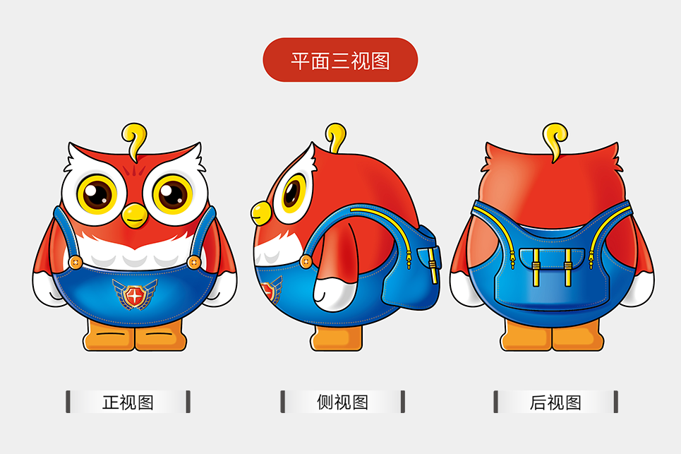 同時(shí),我們基于安全教育的基本屬性,在創(chuàng)作構(gòu)思中,IP形象必須包含有溫暖治愈的特征,大安作為安全精靈,保護(hù)和治愈是它的使命,而整體體態(tài)就必須要帶一點(diǎn)萌,通過暖萌的形象與青少年產(chǎn)生情感共鳴、共振、共情。所以我們將大安的身體變胖了,還原了一個(gè)貓頭鷹應(yīng)有的胖,甚至略有一點(diǎn)肥肥的感覺,配合一雙超級大眼睛,形成一種巧妙的融合感,顯得非常和諧又溫暖。而紅色的身體傳承了電科安全的企業(yè)色彩,顯得異常醒目,同時(shí)也代表了對于危險(xiǎn)的警示和提醒。